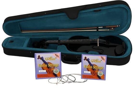Gyermek fa klasszikus hegedűkészlet 1/8-os méretben és két húrkészlettel, DEPOX®, 43 cm, fényes fekete kivitelben